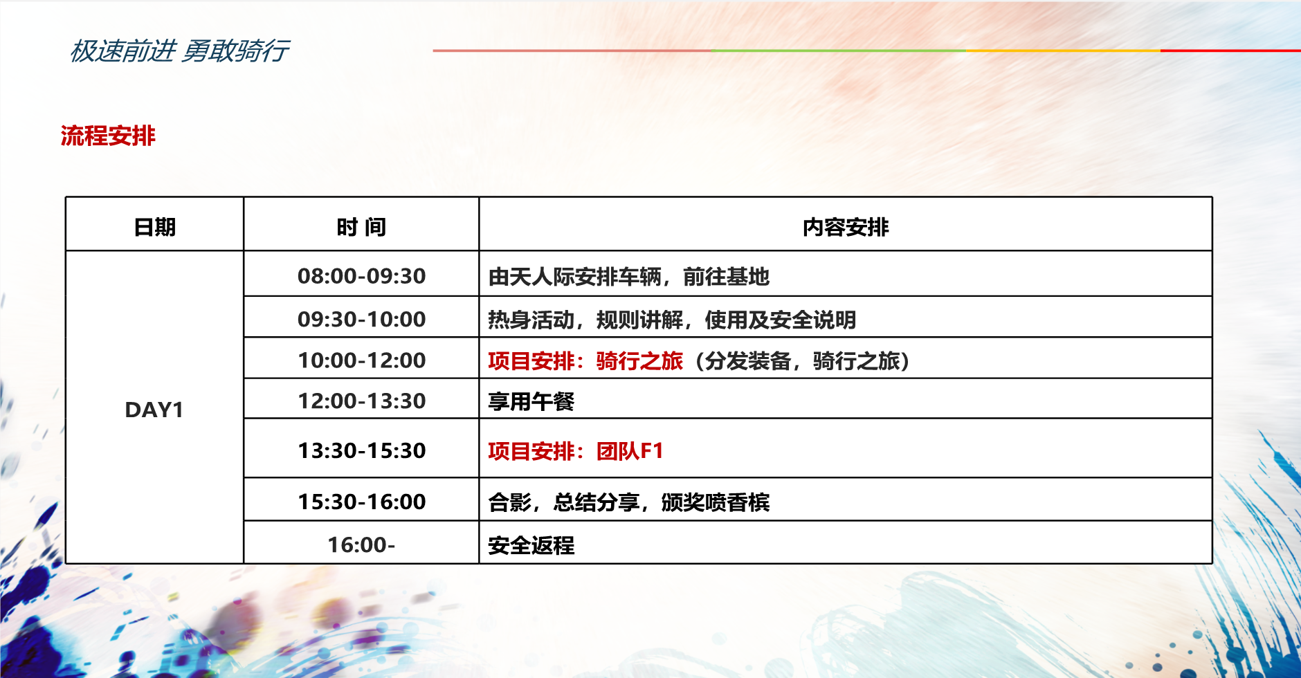 骑行挑战,刺激又有趣,精心设计多样化的骑行路线,让员工们在骑行中放松身心,感受大自然的魅力,在挑战与协作中增加友谊和信任,提升团队的凝集力
